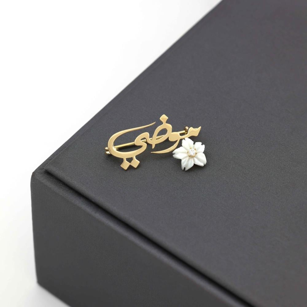 بروش أنيق مُصمم من الذهب الخالص يحمل اسمك
